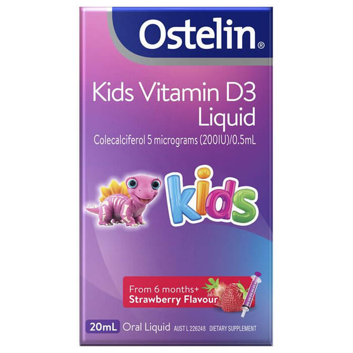 - Ostelin Bán Vitamin Dạng Nước Cho Trẻ Ostelin Kids Vitamin D3 Úc cung cấp 200IU vitamin D trong mỗi liều, có hương vị dâu thơm ngon.