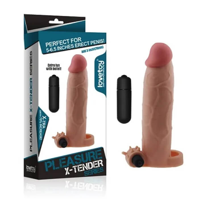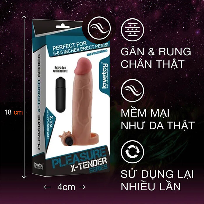 - Bcs Don Den cao cấp có rung Lovetoy Pleasure X-Tender Series giúp kích thước dương vật của quý ông sẽ được dài ra thêm 5,8 cm nữa.
