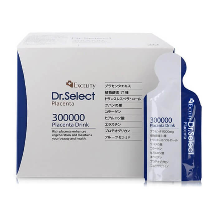 - Dr.Select Placenta Drink giúpnuôi dưỡng làn da khỏe mạnh, tái tạo da, chống lão hóa, viên uống còn giúp điều hòa nội tiết cho phụ nữ và tăng cường sức khỏe.