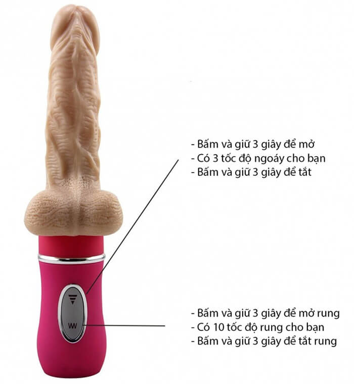 - Rung thụt tự động nhiều chế độ khác nhau, phát nhiệt lên đến 45 độ, 10 tần số rung và 3 chế độ ngoáy khác nhau giúp bạn thủ dâm, dạo đầu tăng hưng phấn, mới lạ chuyện chăn gối.