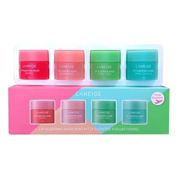 - Set 4 mặt nạ ngủ môi Laneige Lip Sleeping Mask có 4 màu với 4 mùi hương, bạn có thể thay thế liên tục mỗi ngày để đỡ nhàm chán.