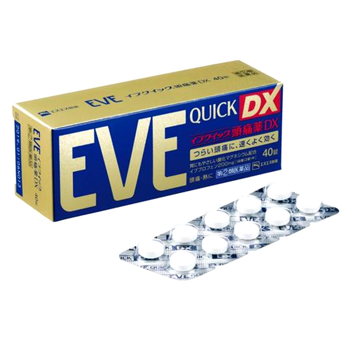 - Viên uống giảm đau, hạ sốt Thuốc Giảm Đau Eve Quick Dx 40 Viên chuyên trị dứt các cơn đau đầu, đau bụng hành kinh, đau khớp, các chấn thương…một cách nhanh chóng và an toàn nhất. Là sản phẩm lưu hành nội địa Nhật Bản, được sản xuất dành riêng cho người dân sử dụng, chất lượng đảm bảo đạt chuẩn của sở y tế. Thuốc Giảm Đau Eve Quick Dx 40 Viên có chứa hàm lượng Ibuprofen kết hợp Allylisopropylacetylurea nâng cao hiệu quả an thần, đồng thời hỗ trợ lưu thông máu huyết toàn cơ thể lấy lại trạng thái cân bằng, làm dịu thần kinh.