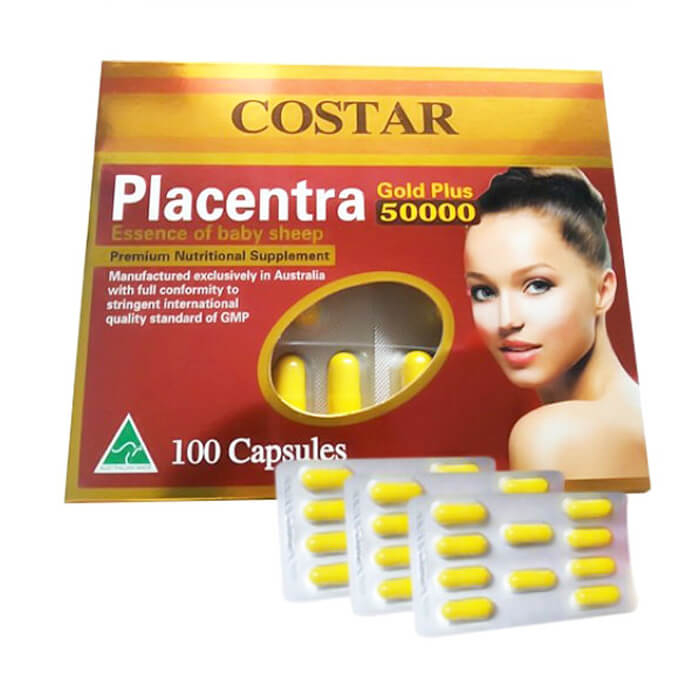 - Viên Nhau Thai Cừu Của Úc Costar Placentra Gold Plus Costar Placentra Gold Plus của Úc loại 50000mg được điều chế dưới dạng viên nang cùng với sự kết hợp tuyệt vời giữa vitamin C, tinh chất hạt nho.