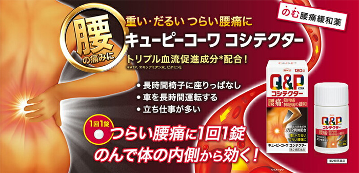 - Viên uống Q&P Kowa giúp cải thiện các chứng đau ở lưng, đau cơ, khớp, đau thần kinh chằng, chệch cột sống, uể oải lưng hiệu quả.